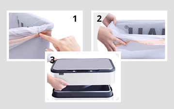 Pratik Kullanım Çöp poşetini elleriniz kirlenmeden kolayca çıkarabilirsiniz. 1. Çöp poşetini iç kovaya yerleştirerek yan taraftaki klipse sıkıştırın, 2. İç kovayı çöpe yerleştirin, 3. Kapağı kapatın.